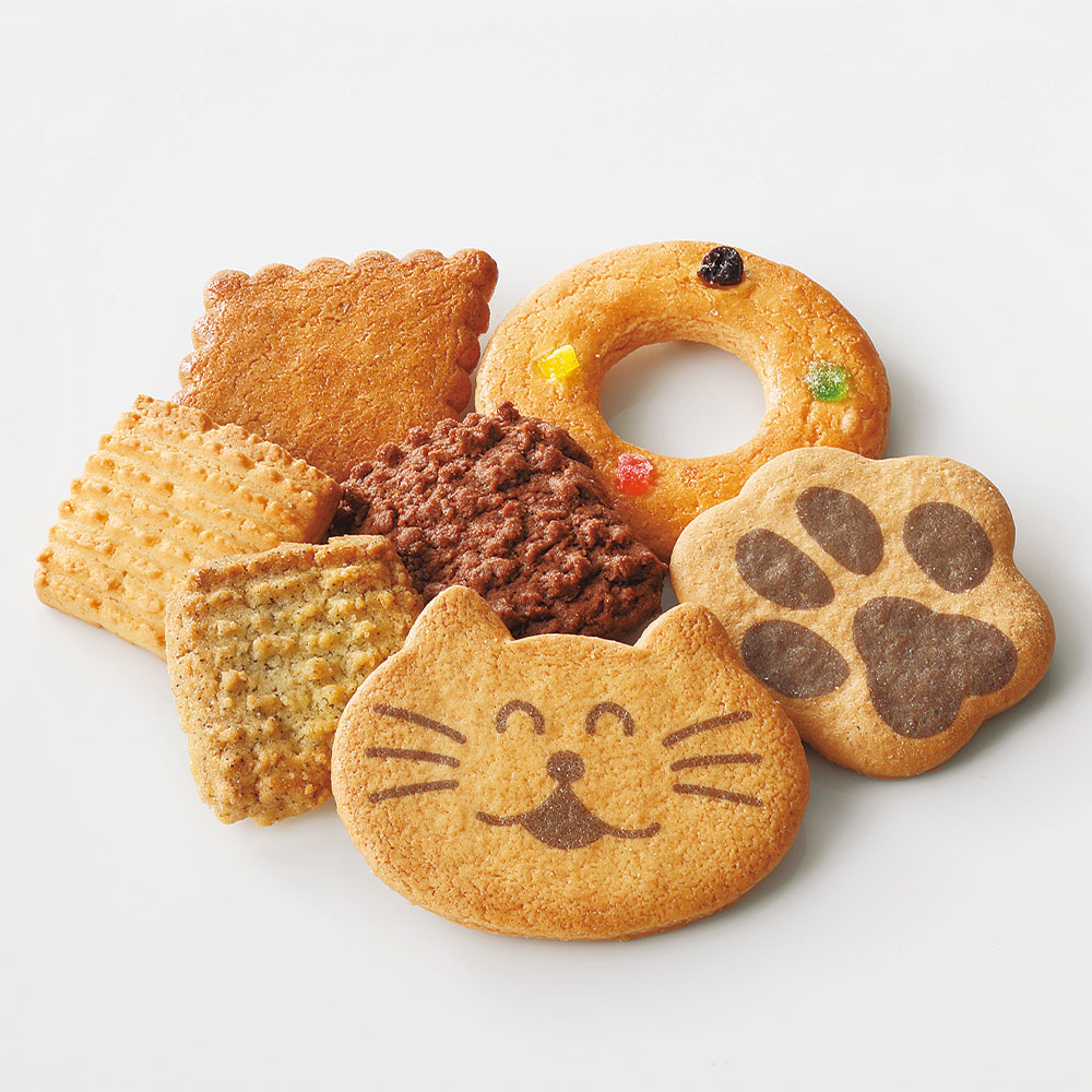 食べやすく、どこか懐かしい、やさしい味わいのクッキーをアソートしたねこ缶。可愛いねこのミニ絵本付です。