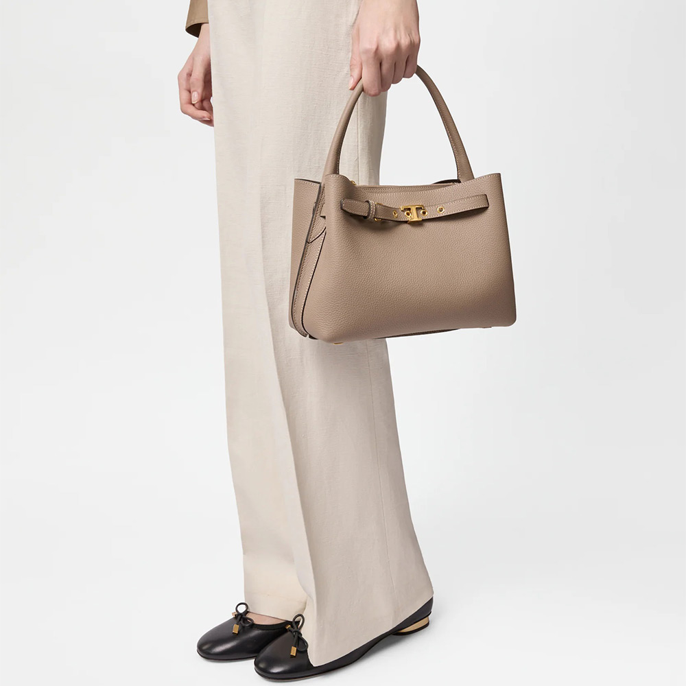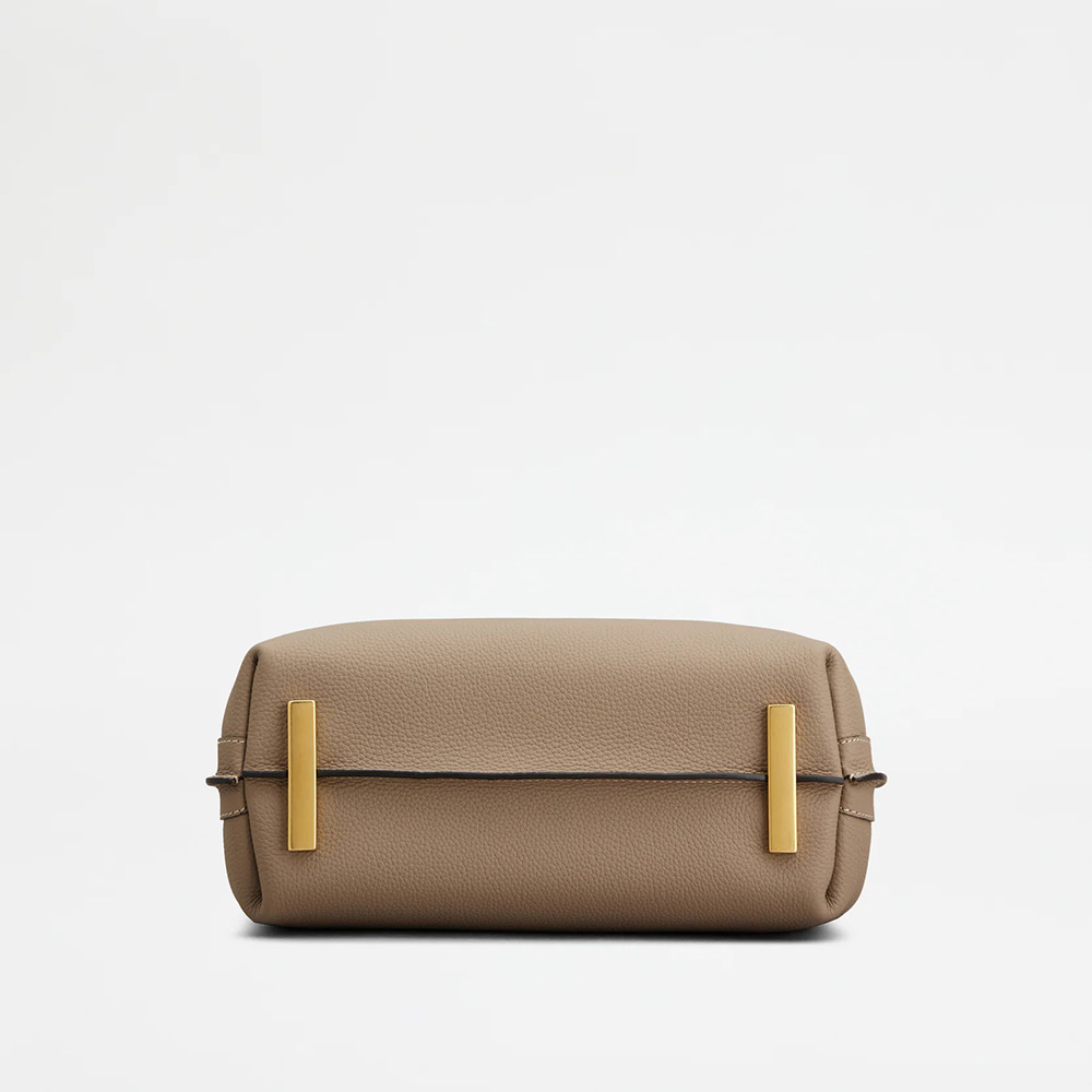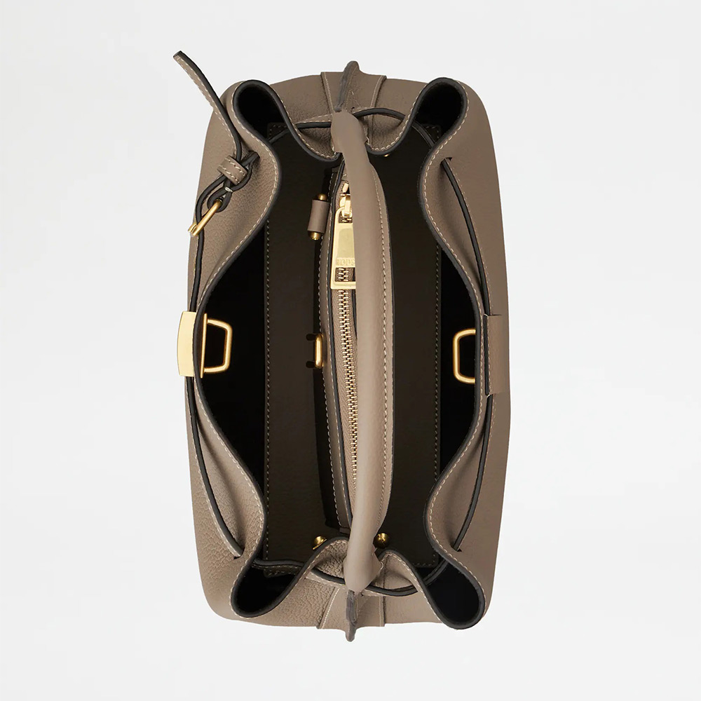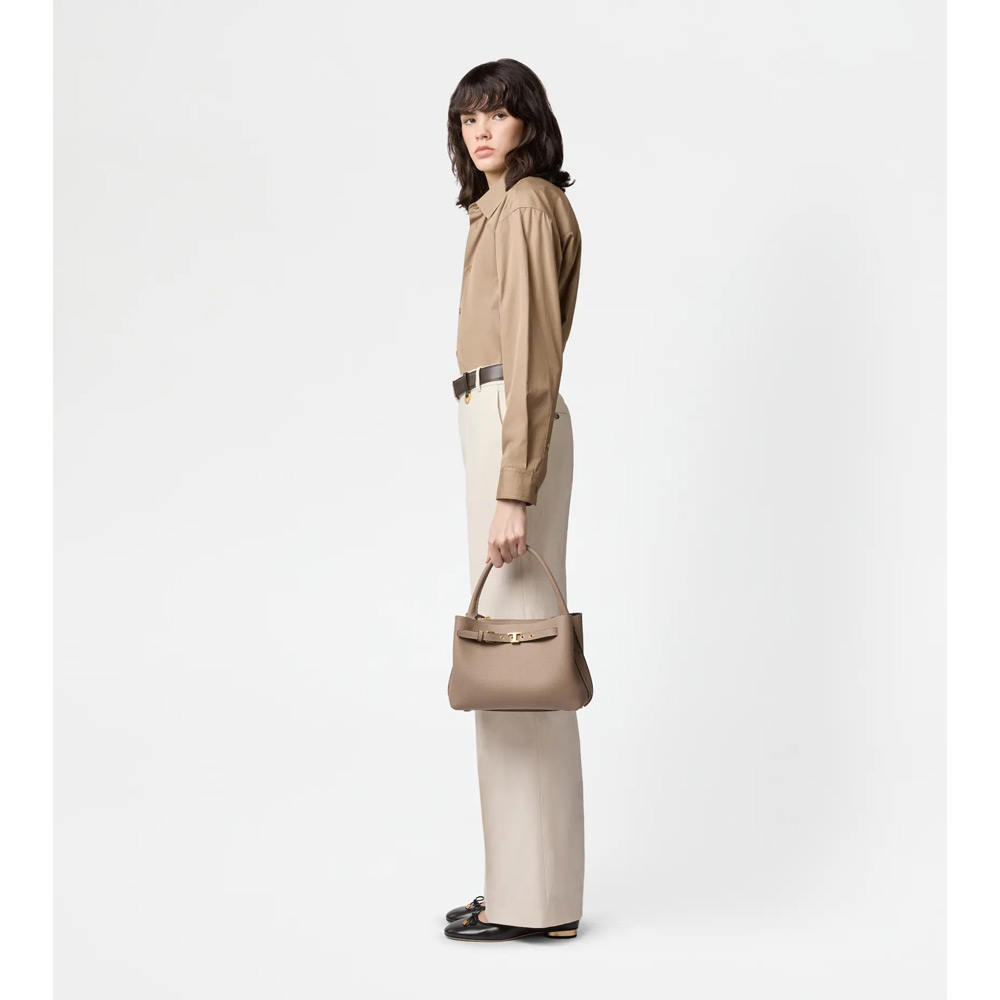 トップ エッジにベルトとアイコニックな T タイムレス アクセサリーをあしらった、柔らかなカーフ レザーのミニ バッグ。チューブ ハンドル、センター ポケットで仕切られた2つのコンパートメント、調節・取り外し可能なショルダー ストラップを合わせ、ディリー ルックにぴったりのスタイルです。