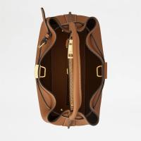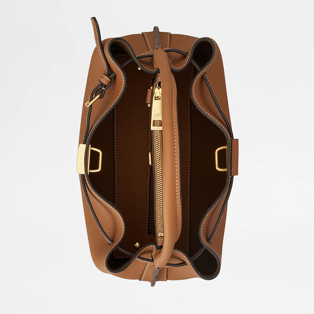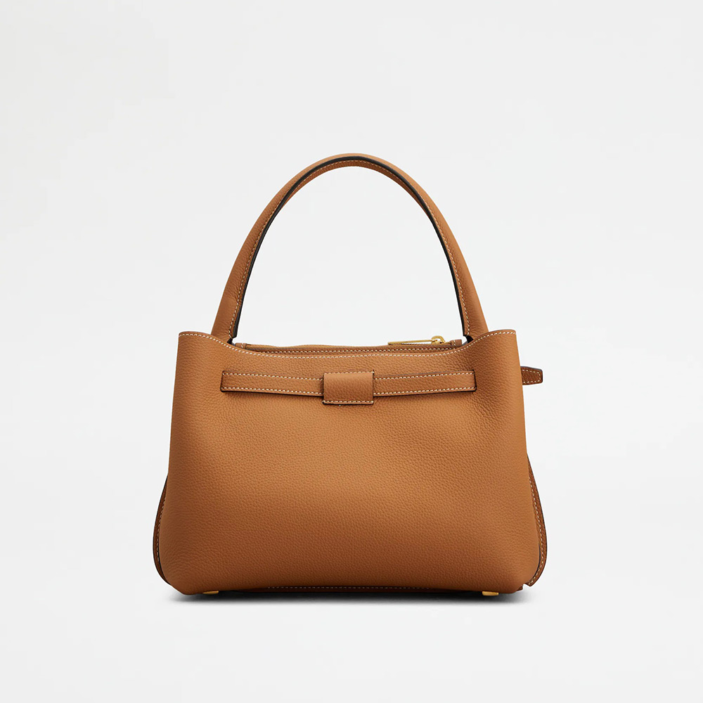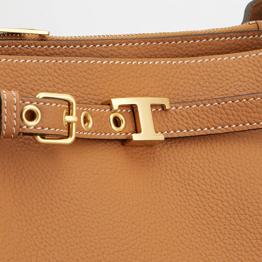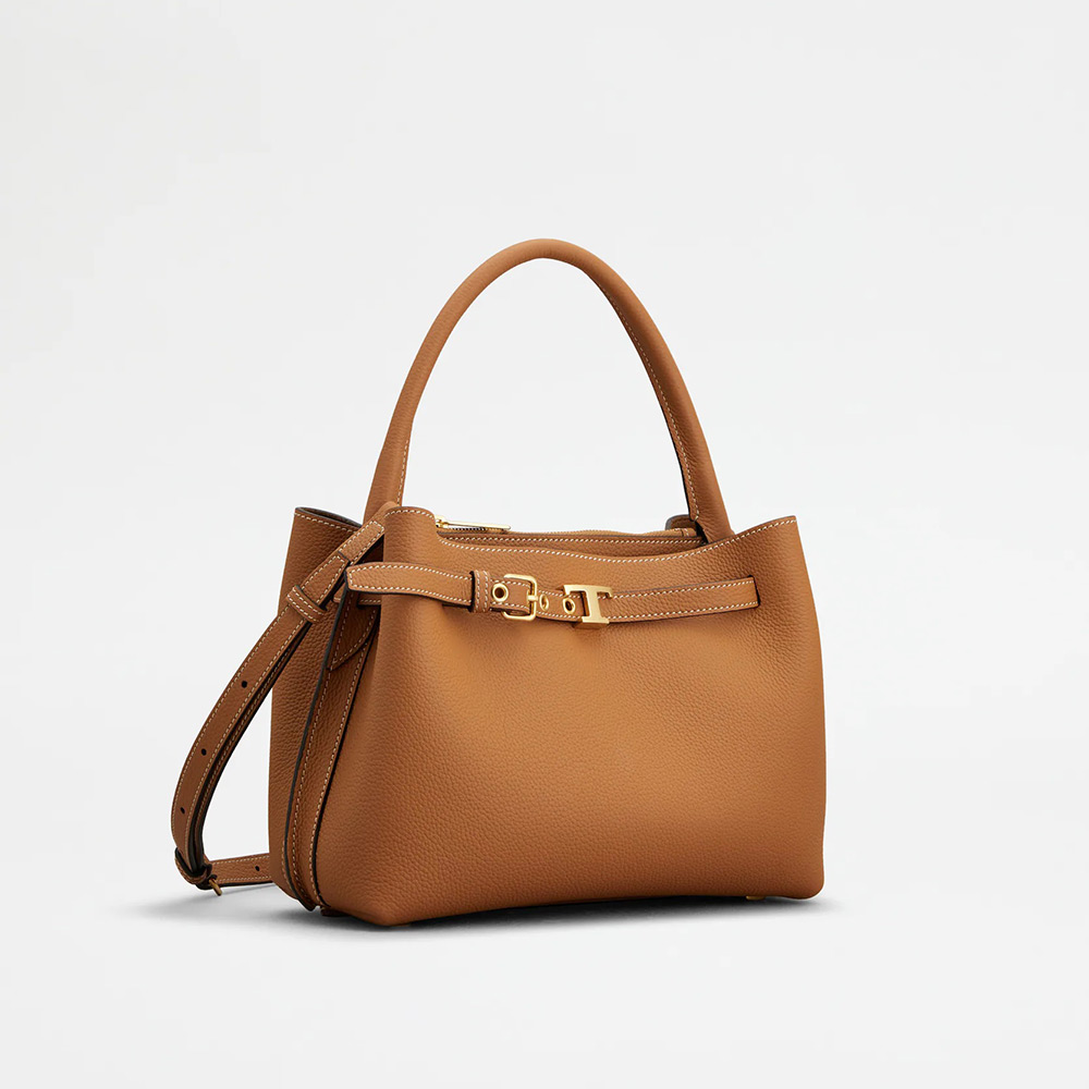 トップ エッジにベルトとアイコニックな T タイムレス アクセサリーをあしらった、柔らかなカーフ レザーのミニ バッグ。チューブ ハンドル、センター ポケットで仕切られた2つのコンパートメント、調節・取り外し可能なショルダー ストラップを合わせ、ディリー ルックにぴったりのスタイルです。