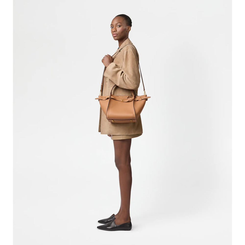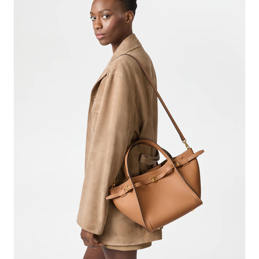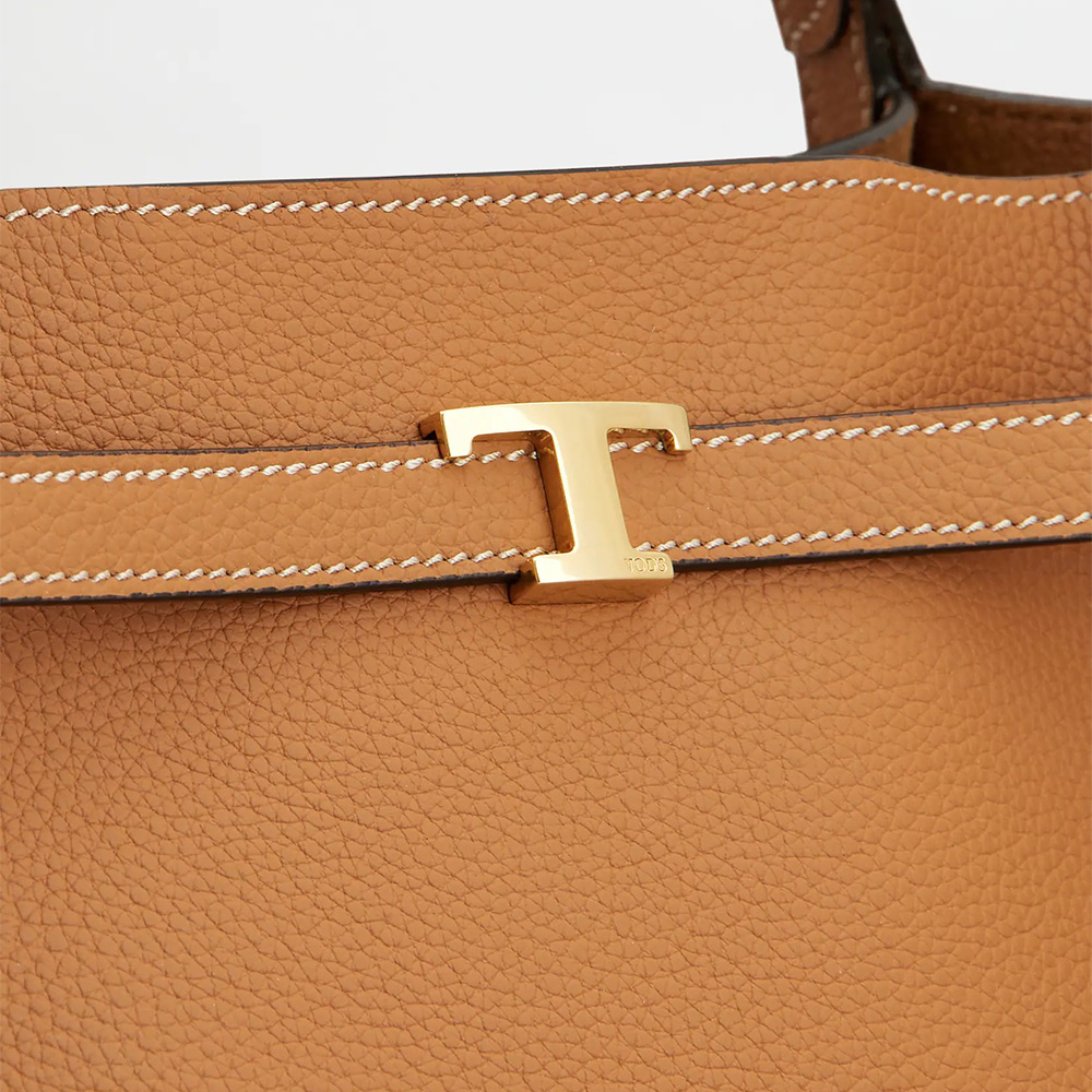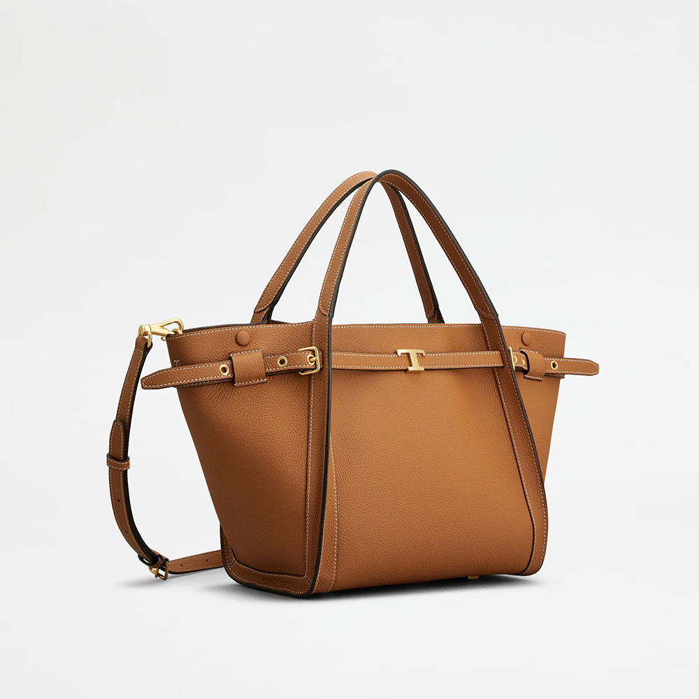 トップ エッジにベルトとアイコニックな T タイムレス アクセサリーをあしらった、柔らかなカーフ レザーのショッピング バッグ。ダブル フラット ハンドル、調節・取り外し可能なショルダー ストラップを合わせ、モダンなディリー ルックにぴったりのスタイルです。