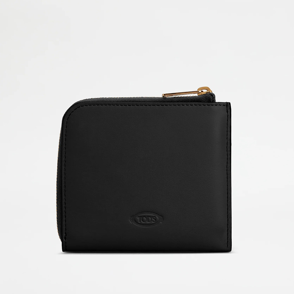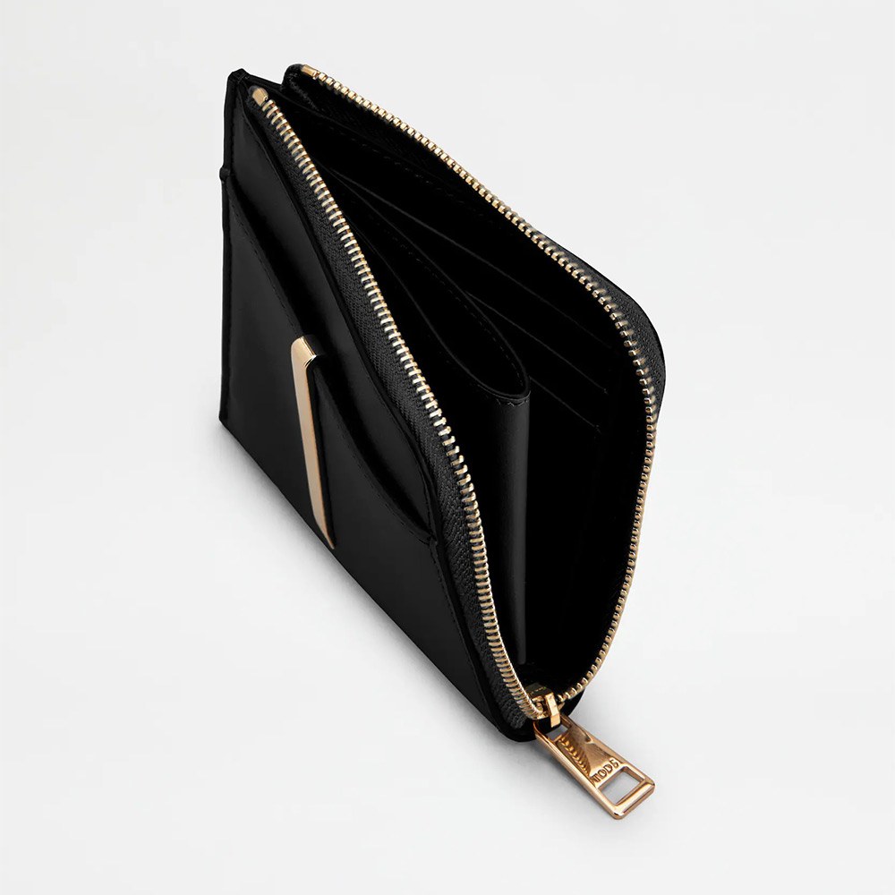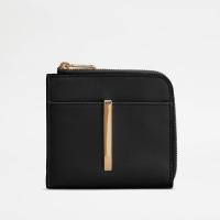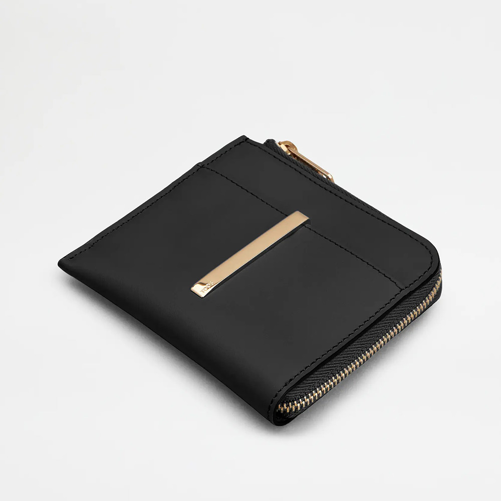 ロゴ入りのバレッタ メタル アクセサリーを外側のポケットにあしらった、柔らかなカーフ レザーのカード ケース。2サイド ラウンド ファスナー、内部に仕切りポケットと3つのカードスロットを備えています。