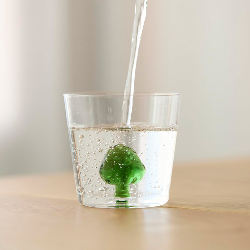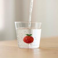 ガラスタンブラーの中にハンドメイドで作られた野菜のデザインが施された、ガラス職人の繊細な技術が光る逸品