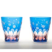 ピンクの下地に水色を重ねた珍しい色被せ硝子に桜柄をカットしました。青空に映える満開の桜をイメージしたグラスです。