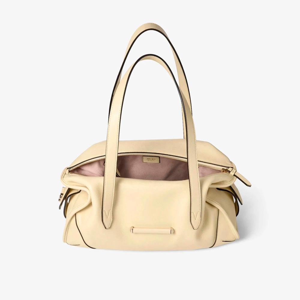 バーバッグファミリーに新しく加わったバー ホールドオールは、バターミルクレザーを使用した収納力の高いキャリーオールバッグ。補強されたコーナーとパイピングが洗練されたシルエットを描き、柔らかな折り目が動きに合わせて広がります。長めのショルダーストラップで快適なハンズフリースタイリングが可能。フロントにはシグネチャーのバー ハードウェア、サイドにはゴールド仕上げのJCロゴをあしらい、内部には必需品を収納できるジップ付きコンパートメントを備えています。