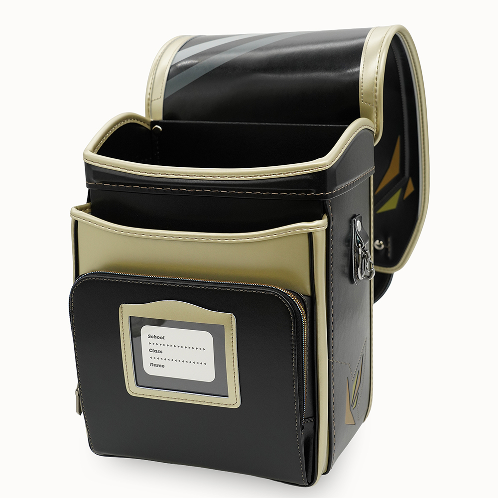 冒険心をくすぐる力強いデザインに、きらりと光るアクセント。パール素材とのコンビネーションで、存在感のある華やかさもプラス。13.5cmマチの大容量で、毎日の通学をワクワクさせるランドセルです。