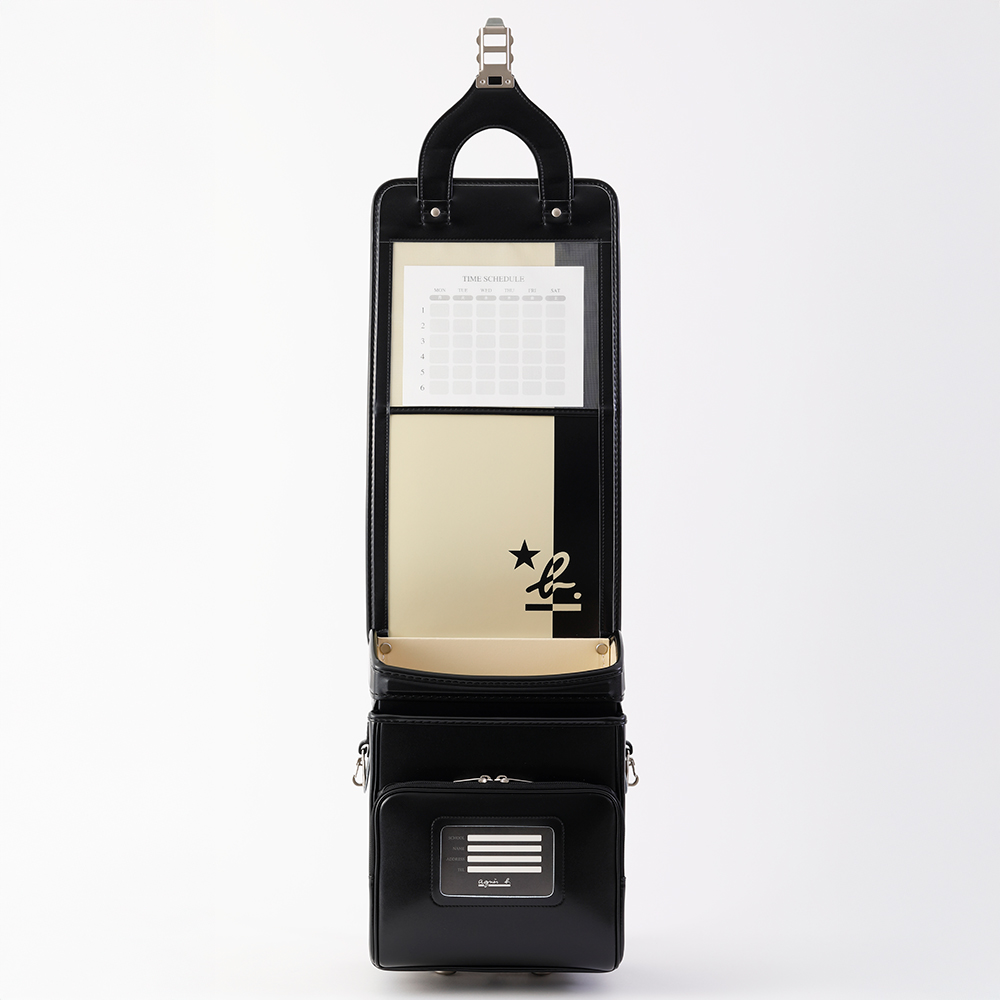 アニエスベーの新規商品。軽量化でも機能性を重視したデザインです。フィットちゃん、ミラくるっロック(R)、らくふわベルト(R)採用、カブセ裏にはロゴをデザイン。
