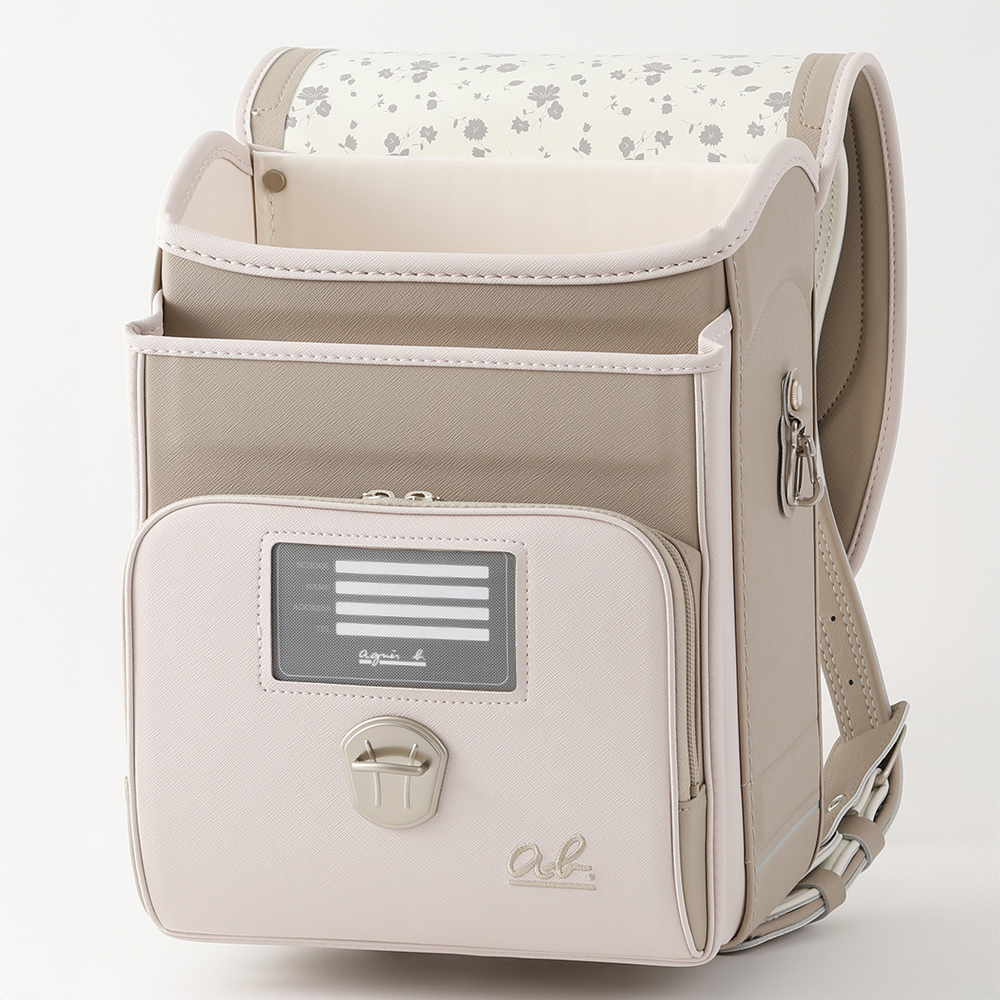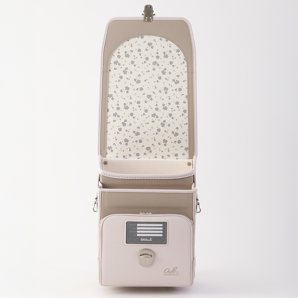 アニエスベーの新規商品。デザイン重視のモデルで、コンビカラー。カブセ裏には小花柄デザインを施しました。