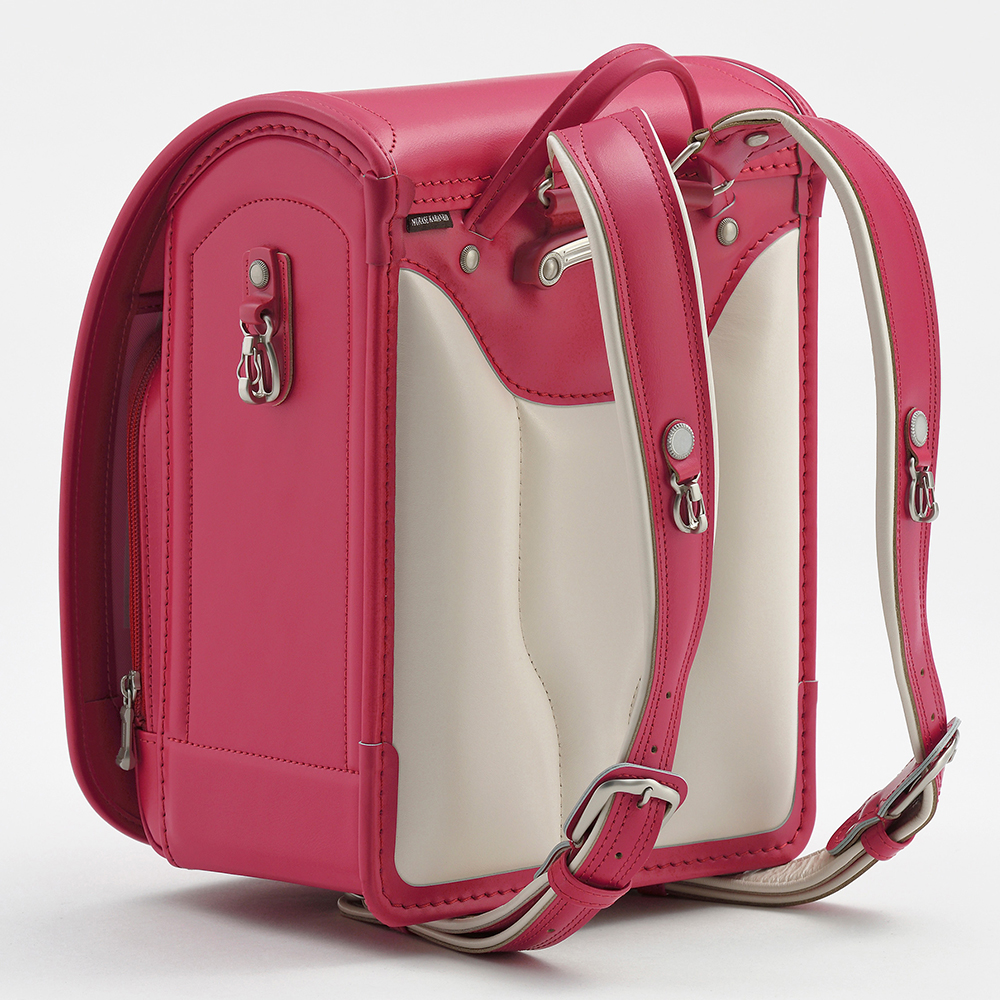 仕切りを排除して大マチ幅14cmを実現。デッドスペースがなくなり多くの荷物が収納可能に。牛革ならではの耐久性に加え軽量化も兼ね備えました。衝撃吸収Mクッション(低反発材)により肩への負担が軽減し快適に通学ができます。しっかりとした箱型は雨が入り込みにくい構造で傷にも強いのが特徴です。