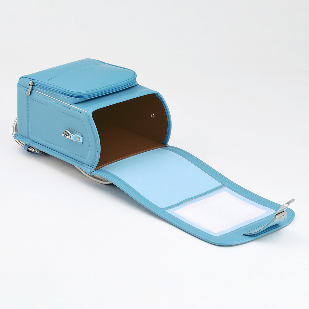 仕切りを排除して大マチ幅14cmを実現。デッドスペースがなくなり多くの荷物が収納可能に。牛革ならではの耐久性に加え軽量化も兼ね備えました。衝撃吸収Mクッション(低反発材)により肩への負担が軽減し快適に通学ができます。しっかりとした箱型は雨が入り込みにくい構造で傷にも強いのが特徴です。