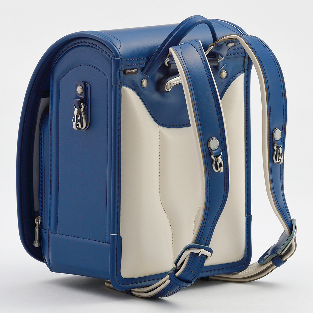 仕切りを排除して大マチ幅14cmを実現。デッドスペースがなくなり多くの荷物が収納可能に。牛革ならではの耐久性に加え軽量化も兼ね備えました。衝撃吸収Mクッション(低反発材)により肩への負担が軽減し快適に通学ができます。しっかりとした箱型は雨が入り込みにくい構造で傷にも強いのが特徴です。