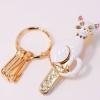 大切な鍵がバッグの中で迷子にならないように、クリップの金具部分に鍵をつけ、そのままバッグの外・内ポケットなどに挟めます。カラーストーンのネックレスをつけておすわりしている人気のネコデザインで、ギフトにもおすすめです。
