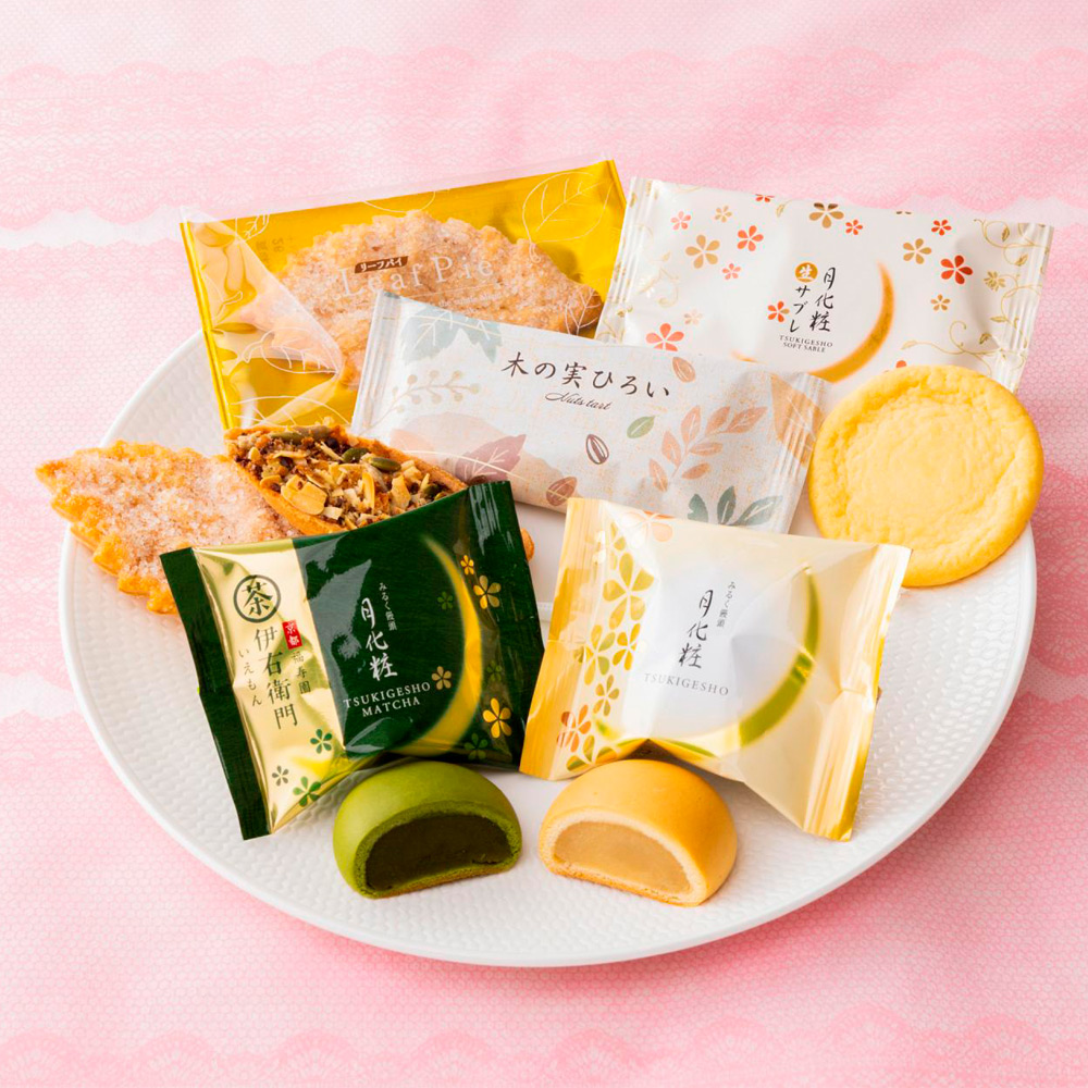 月化粧×3、伊右衛門月化粧×3、月化粧生サブレ×5、木の実ひろい×4、リーフパイ×4
