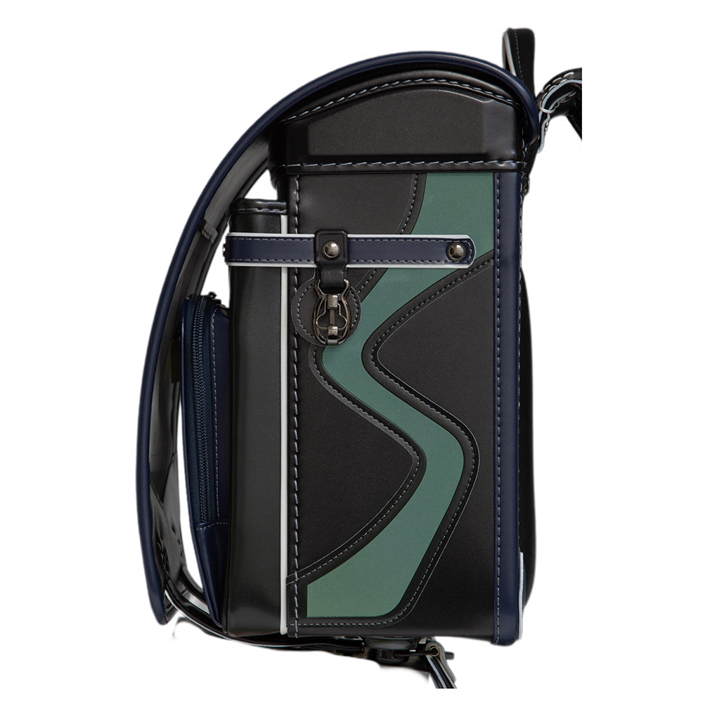 「ブラック」「ネイビー」「グリーン」を組み替えたデザインで、厚みのある肩ベルト「らくふわベルト(R)」を搭載しており、デザインと機能性を兼ねたランドセルです。
