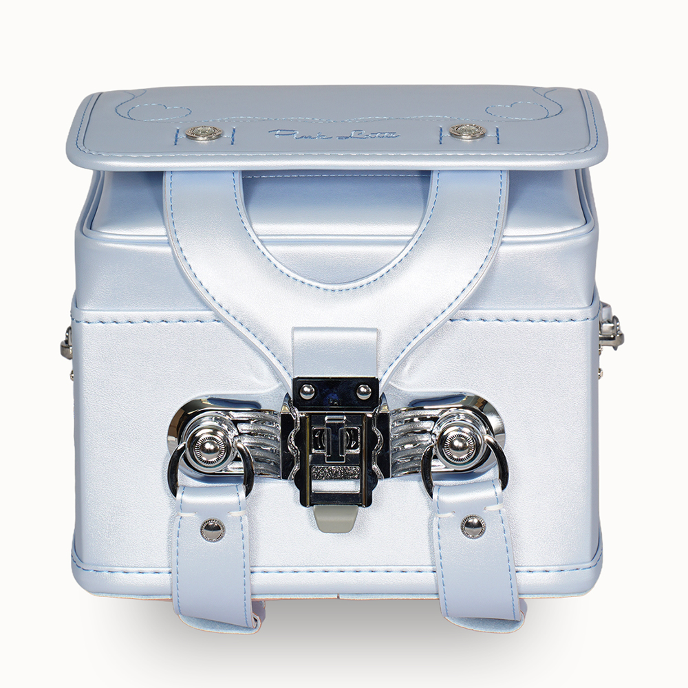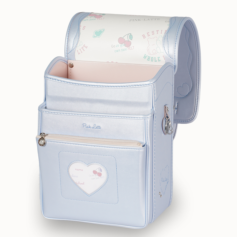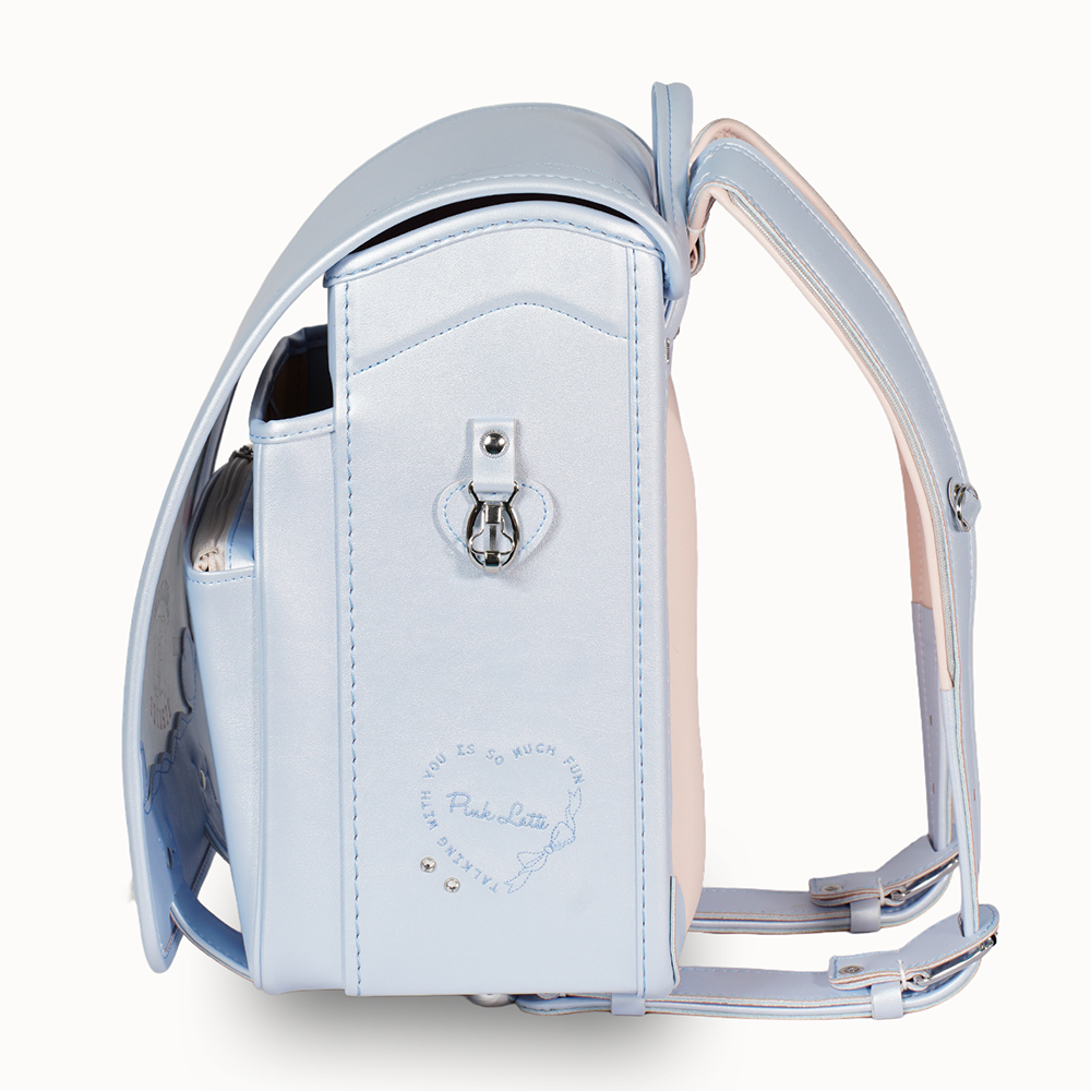 お子さまの「今欲しい」をかなえるピンクラテとのコラボランドセルが登場。ガーリーなデザインに、パールのような大人っぽいきらめきをまとったランドセル。