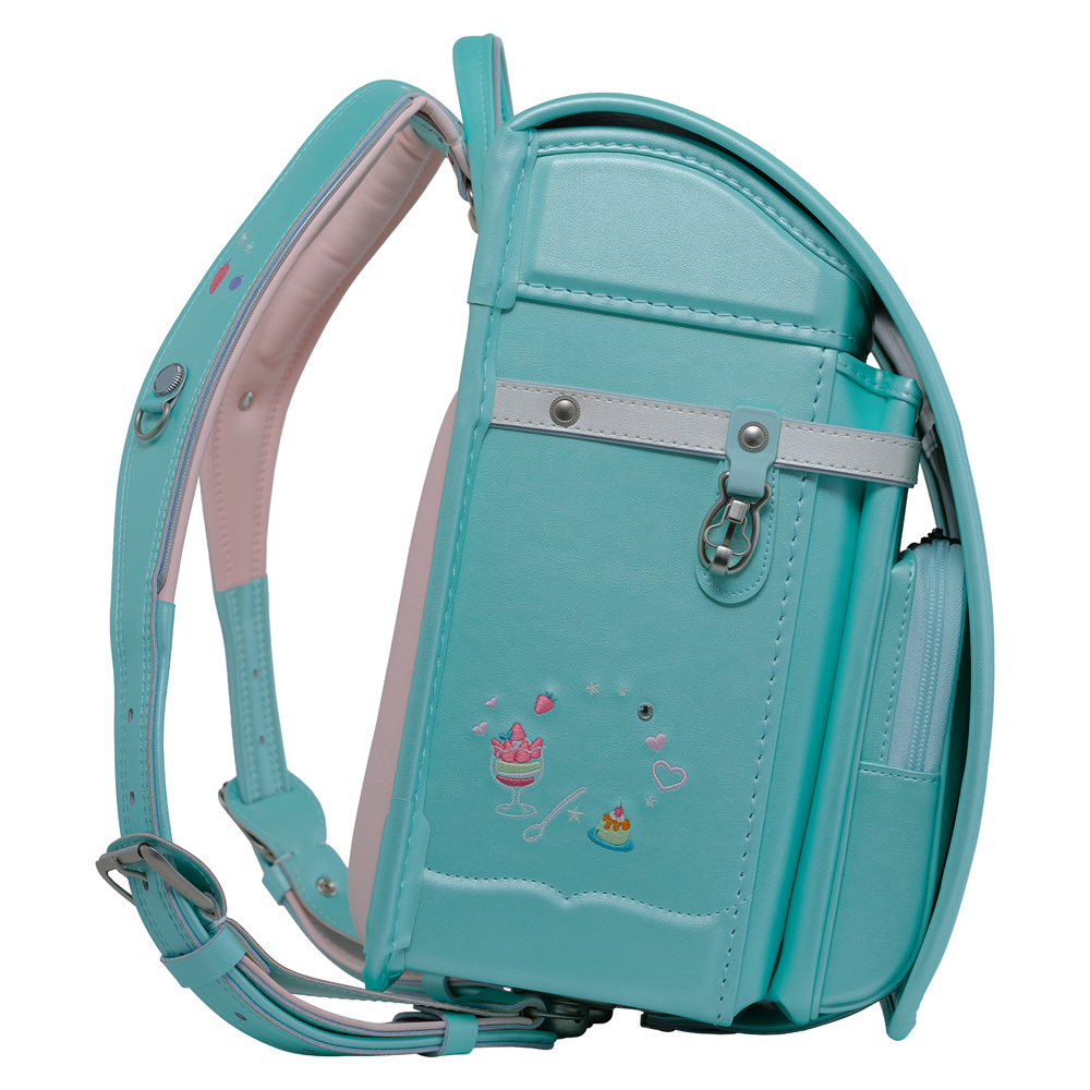 お気に入りのケーキみたいにとびきり可愛いランドセルで。ファスナーチャームもスイーツ柄がポイント。肩ベルトにはやわらかいクッションが入り、重たいランドセルも軽く感じさせます。