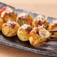 1979年創業の昔ながらの大阪梅田の人気店「蛸之徹」監修のもと、お店の人気メニュー「たこシソ焼」を冷凍食品で再現しました。たこ焼の生地に大葉を練りこんだあっさりとした味わいが特徴。添付のソース(蛸之徹オリジナル)であっさりと召し上がってください。