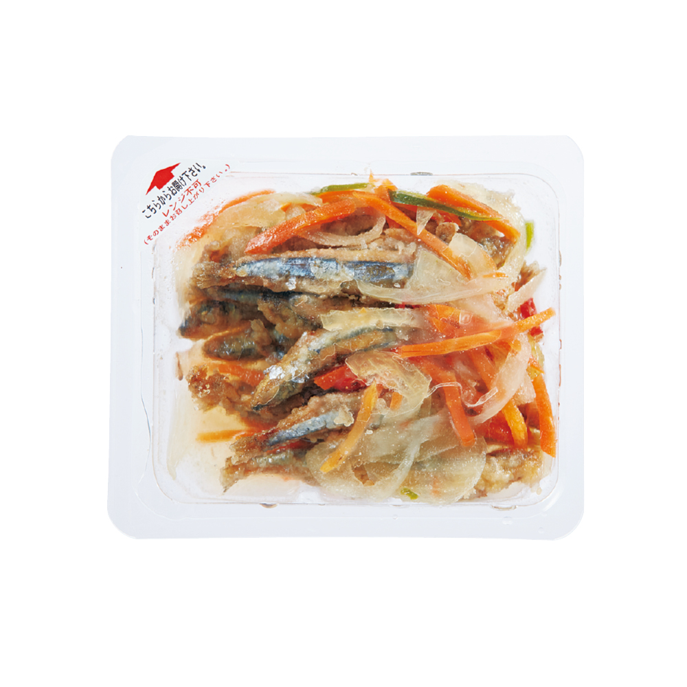 さっぱりおいしい長崎県産きびなごを使用した南蛮漬けです。魚と国産野菜が程よい割合で入っております。きびなごを1度揚げてありますので骨が気にならずお召し上がりいただけます。さっぱりとした味付けで食べやすくご飯のおかずやお酒のおつまみに最適です。