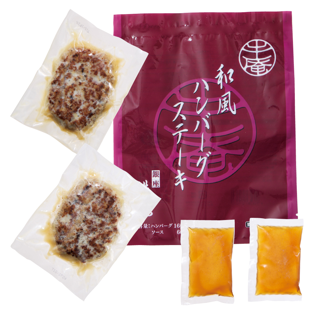 銀座にある専門店監修商品で、ランチメニューのハンバーグが人気のお店です。国産牛を使用したハンバーグに特製和風ソースをお付けしました。お店の味をご家庭でお楽しみいただけます。