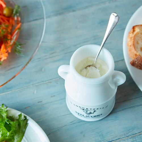出来たてはミルキーで甘く、次第に熟成し酸味と香りが豊かになります。上部に自然にクリームチーズのような濃厚な層と、すっきり爽やかなヨーグルト層の2層の絶妙なハーモニーが楽しめます。ジャージー牛の搾りたて生乳の品質を維持するため牧場に隣接するヨーグルト工場で製造。搾乳から製造までの最短距離を実現しました。