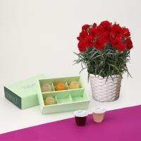 果物専門店「新宿高野」人気の果実ゼリーと、鮮やかに咲き誇る赤いカーネーションの花鉢を組合せ。「母の日」限定の組合せギフトです。