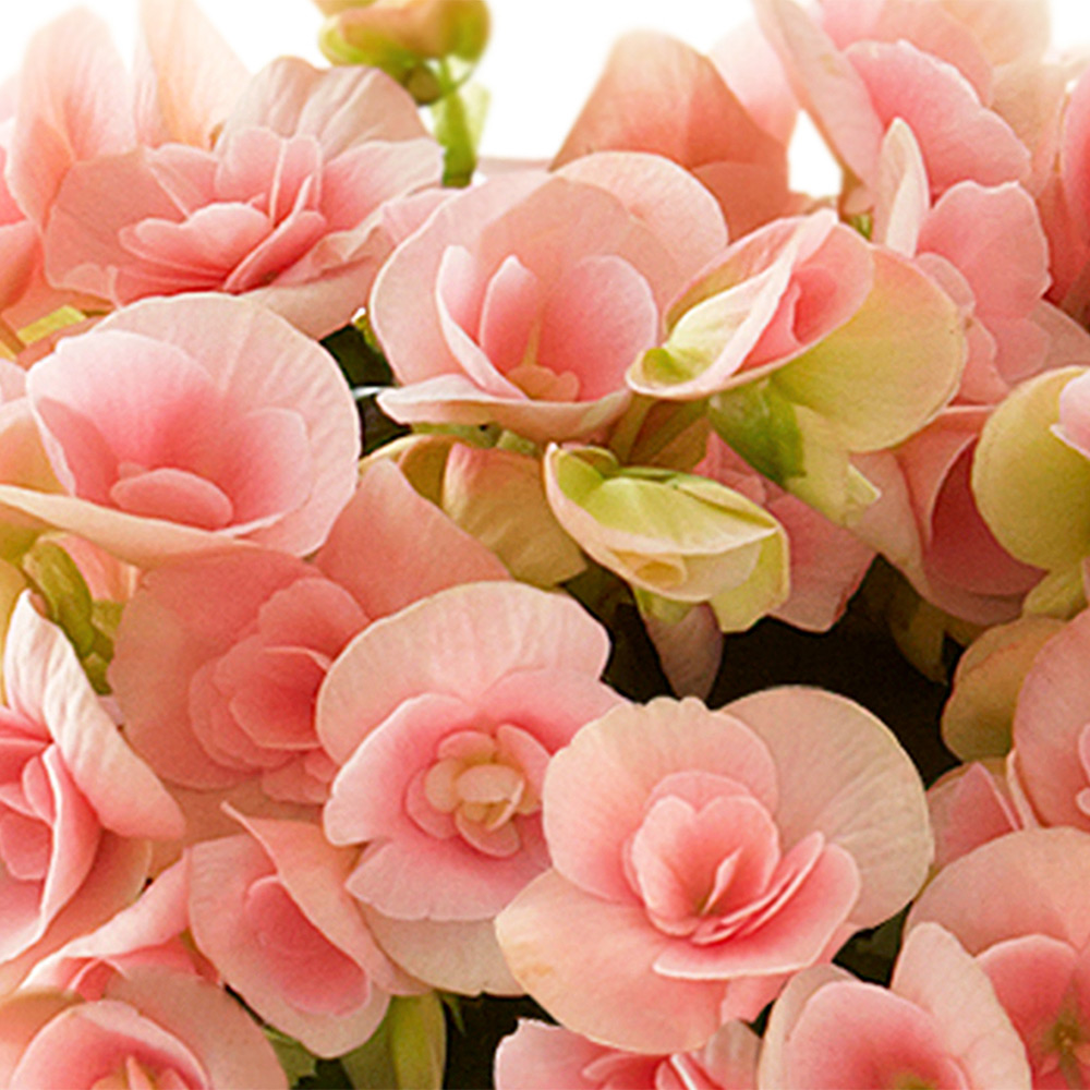 ほんのりクリームがかったピンク色の花が可愛らしい「ロマンス」。ベゴニアの中でも人気の品種です。花言葉は「幸せな日々」「丁寧」など。射日光は避けて、日当りが良く風通しの良い場所で育てれば次々と花を楽しむことができます。
