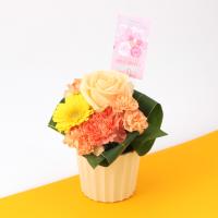 国産バターを使用し、ふんわり、しっとり焼き上げた人気のマドレーヌ詰合せと、見ているだけで元気になりそうなビタミンカラーのアレンジメントフラワーを組合せ。「いつまでも健康で元気でいてほしい」と願いを込めて「母の日」に贈りませんか。※写真のアレンジメントフラワーは、三方見の仕上げとなっておりますので後ろにお花は入っておりません。「母の日」ギフトカードの向きが正面となりますので、壁などを背にして置いていただけるとより綺麗にお楽しみいただけます。アレンジメントフラワーは暑さに弱いため、直射日光を避け涼しいところに置いていただくことをおすすめいたします。
