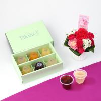 果物専門店「新宿高野」人気の果実ゼリーと、華やかでエレガントな色合いのアレンジメントフラワーを組合せ。「母の日」限定の組合せギフトです。