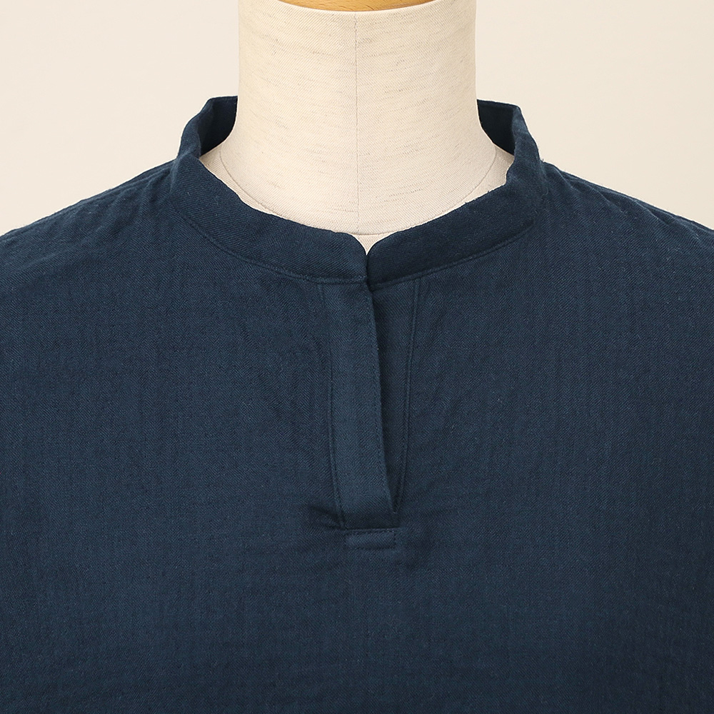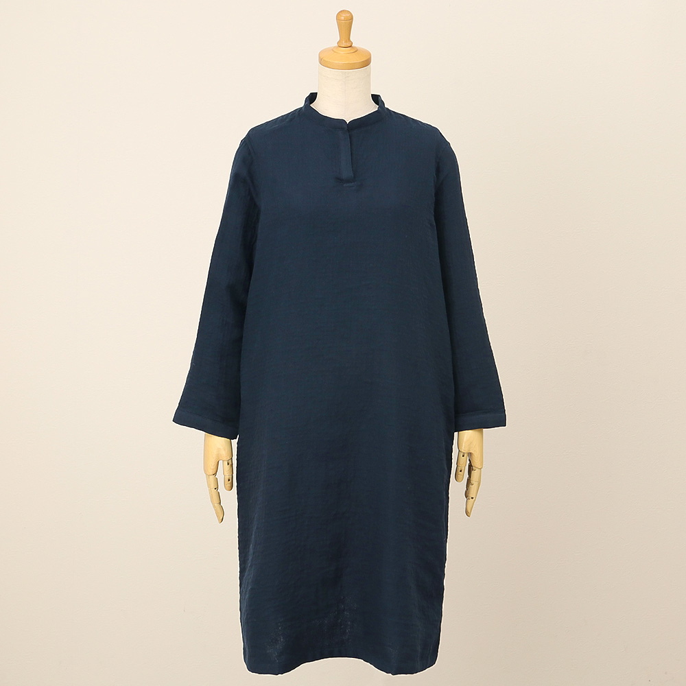 シンプルなデザインで落ち着いた印象のワンピース。スタンドカラーとスキッパー開きなので、快適な着心地ながらも、着用時はラフな印象を与えすぎず、ルームウェアとしてもワンマイルウェアとしてもおすすめです。<マシュマロガーゼ(R)とは>表面と裏面にやわらかな肌触りの撚りの少ない糸を使用し、中間組織に強度の高い撚糸を使用して3重以上の多層に織り上げた革新的なガーゼ素材です。やわらかな肌触りと強度を両立させ、保温性と通気性、吸湿・吸水性を兼ね備えた、年間を通じて快適にご使用いただける素材です。