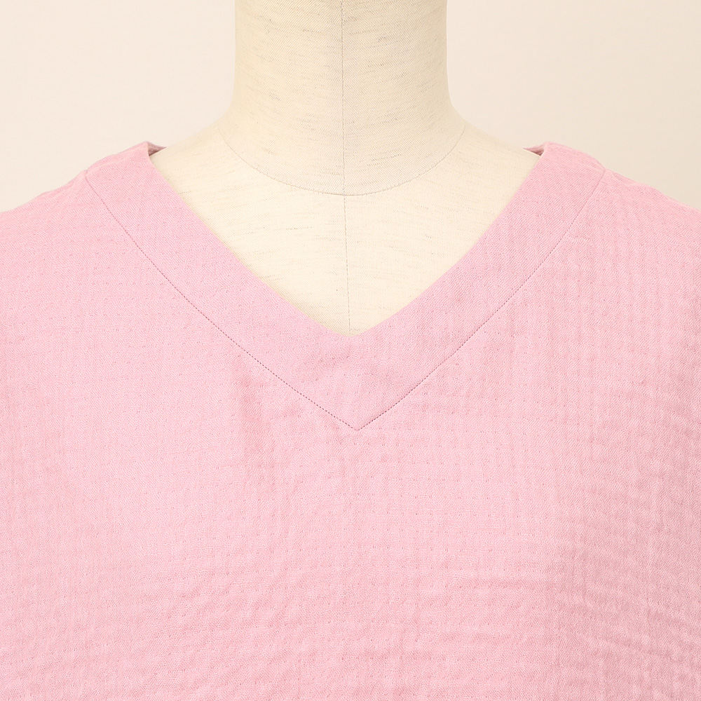 襟ぐりがVネックとラウンドネックと前後で着用できる2wayのパジャマ。袖口とパンツの裾は折り返して丈を調整しやすい見返し仕立てになっています。パンツは便利な両脇ポケット付き。<マシュマロガーゼ(R)とは>表面と裏面にやわらかな肌触りの撚りの少ない糸を使用し、中間組織に強度の高い撚糸を使用して3重以上の多層に織り上げた革新的なガーゼ素材です。やわらかな肌触りと強度を両立させ、保温性と通気性、吸湿・吸水性を兼ね備えた、年間を通じて快適にご使用いただける素材です。