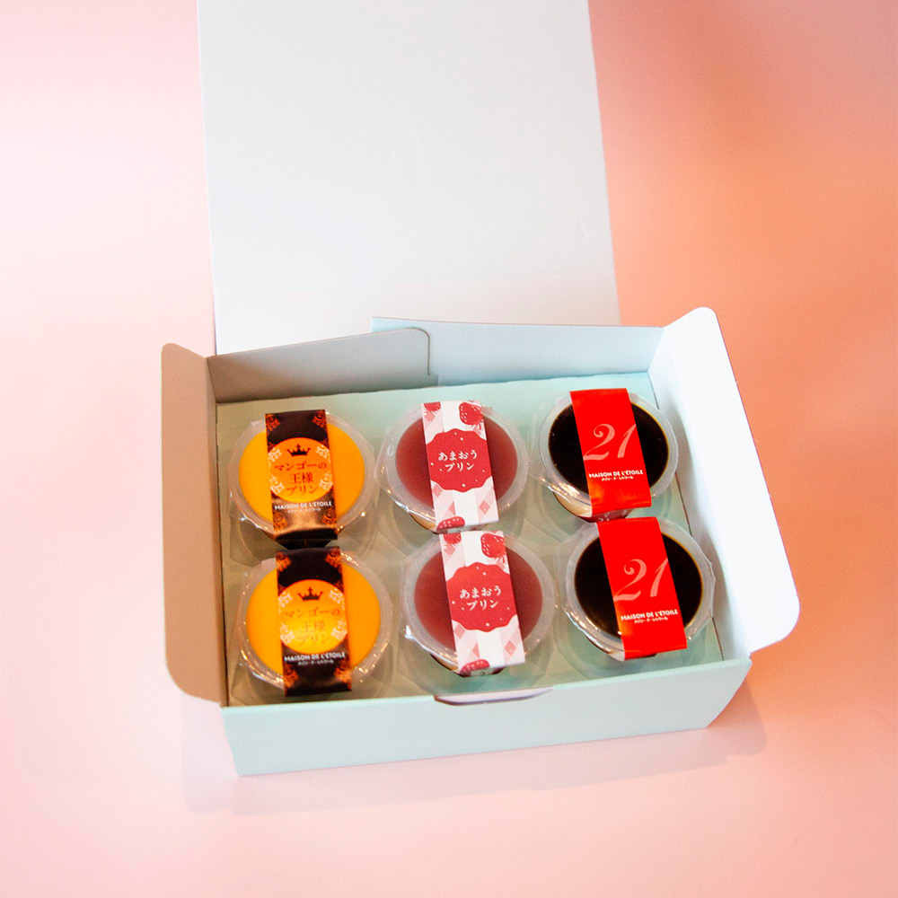 福井県鯖江市にあるプリン専門店。福岡県産のあまおうを使用したあまおうプリン、当店大人気のマンゴーの王様プリン、コクのある濃厚なめらかなカスタード21世紀プリンの母の日限定6個セット。とろけるくちどけ、濃厚な味わいをお楽しみください。母の日限定パッケージでお届けします。