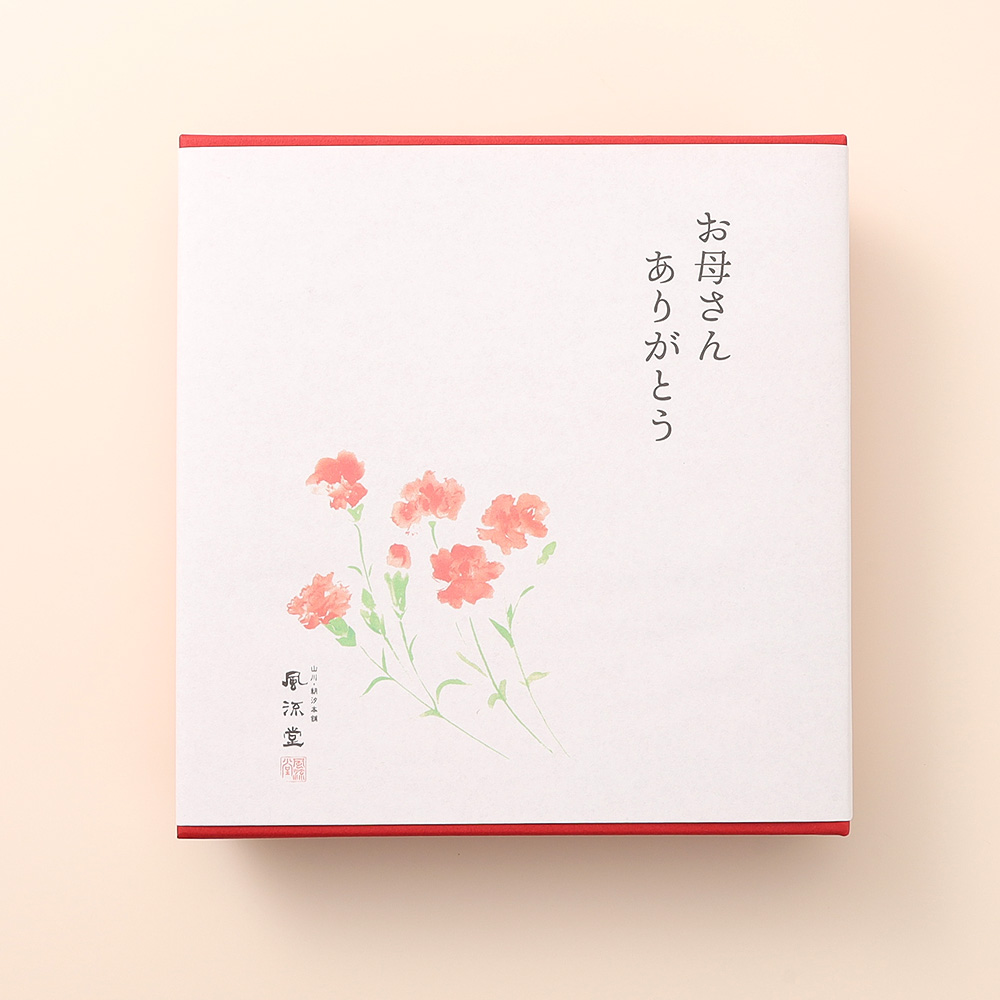 職人の技が光る練り切り「バラ」、ういろうでたおやかに表現した「カーネーション」、上品な甘さのじょうよ饅頭「ありがとう」、華やかな母の日の棹菓子をお詰め合わせいたしました。
