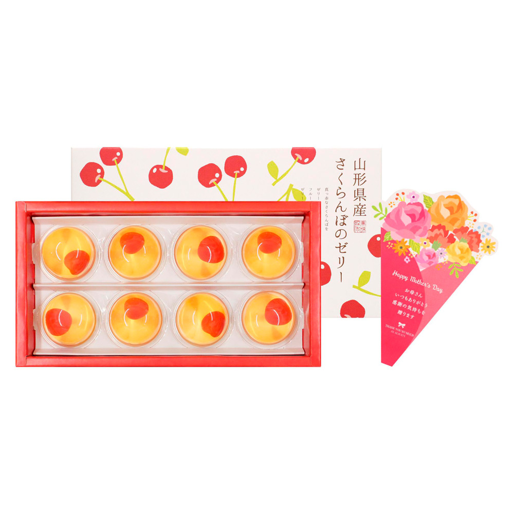 山形県産さくらんぼを使った、涼やかで可愛らしい水菓子です。京都で人気の和菓子店「京都養老軒」が監修。母の日のメッセージをつけてお届けいたします。