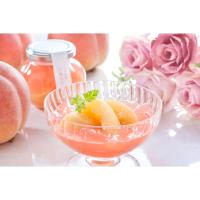 桃の形をイメージした瓶の中に、白桃の果実とピューレで作ったゼリーを閉じ込めました。