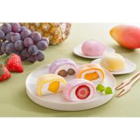 フルーツの果肉とクリームを柔らかなお餅で閉じ込めたカラフルなフルーツ大福