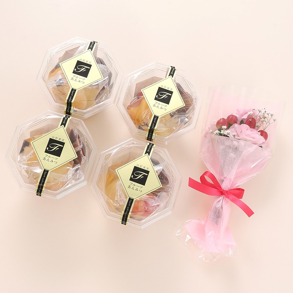 【母の日】やまがた果実フルーツあんみつとミニ花束セット(生花)
