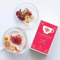 母の日に贈りたいカーネーションを飲む花茶でお届けしませんか。カーネーション一輪が湯に咲く様はとても美しく、心に染みるカーネーション花茶。fuachaの人気商品のばら花冠茶&果茶とセットにしました。