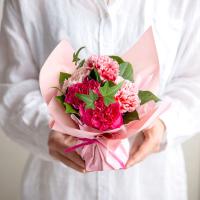 飾る場所を選ばない、可憐な華やぎ。「そのまま飾れる」ピンクのブーケで、心弾む母の日を。
