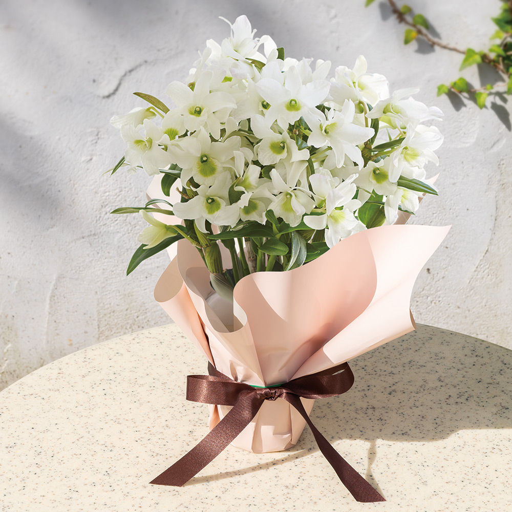 「思いやり」を形にする、純白の輝き 清楚に咲き誇る、デンドロビウムの贈りもの。