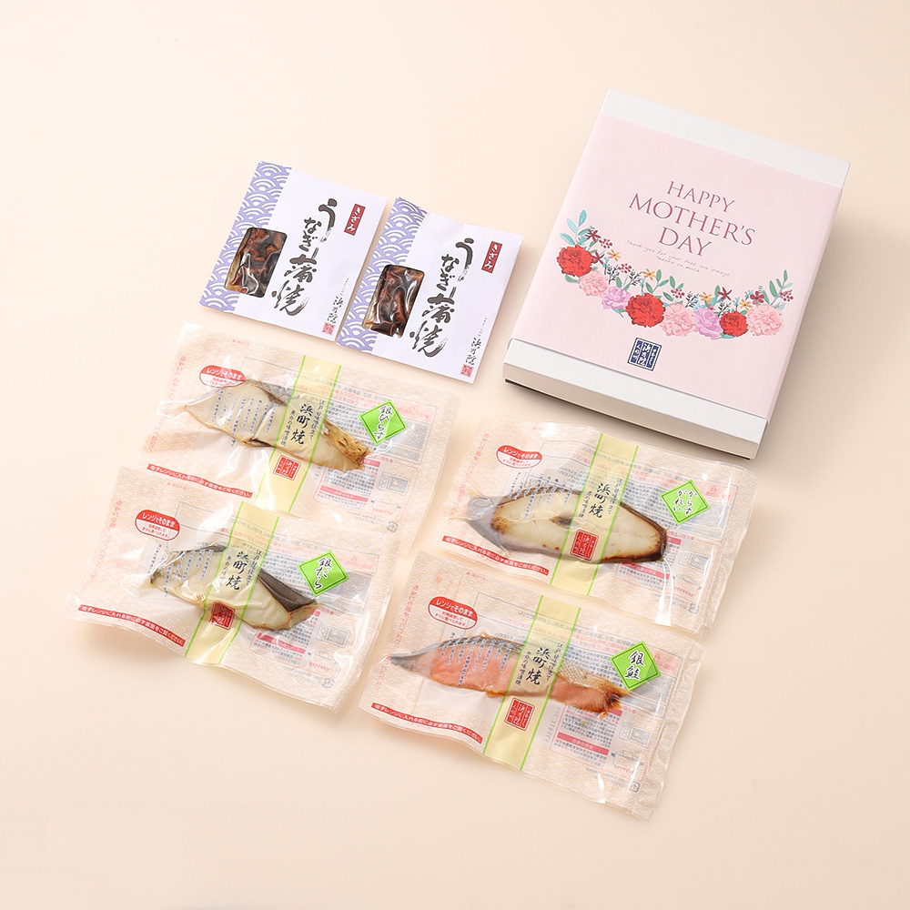 銀だら×1、銀鮭×1、銀ひらす×1、からすがれい×1、きざみうなぎ(身40g・たれ25g)×2