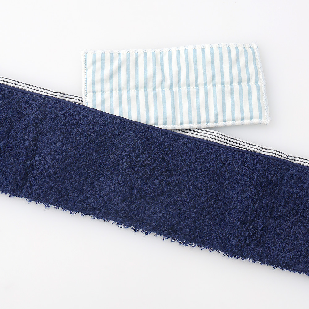 今治産タオル生地を使い、縫製も今治のタオルマフラー。ふんわりと肌ざわりがよく、洗濯を繰り返しても硬くなりにくいのが魅力です。吸水性があり、汗も吸います。水の気化熱でひんやり感じる、付属の冷んやりシートを内側のポケットに入れれば、日よけしながら心地よい涼しさに。リボンのようなかわいい見た目が特長で、首周りの内側のみタオル生地なのでかさばらず軽いつけごこち。結び目のように見える部分がループ状になっていて、もう一方の端をここに通すだけで、整ったリボンの形に決まります。ナチュラルな柄で、ガーデニングや散歩、アウトドアなどの外出にもお使いいただけます。