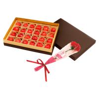 山形県産さくらんぼ(佐藤錦)とカーネーション(造花)をセットに。一つひとつ丁寧に並べたギフト仕様のさくらんぼです。
