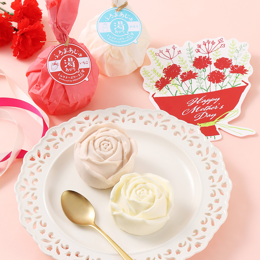 母の日限定の味わえるバラ型ふろまあじゅ(みるく味・いちご味)