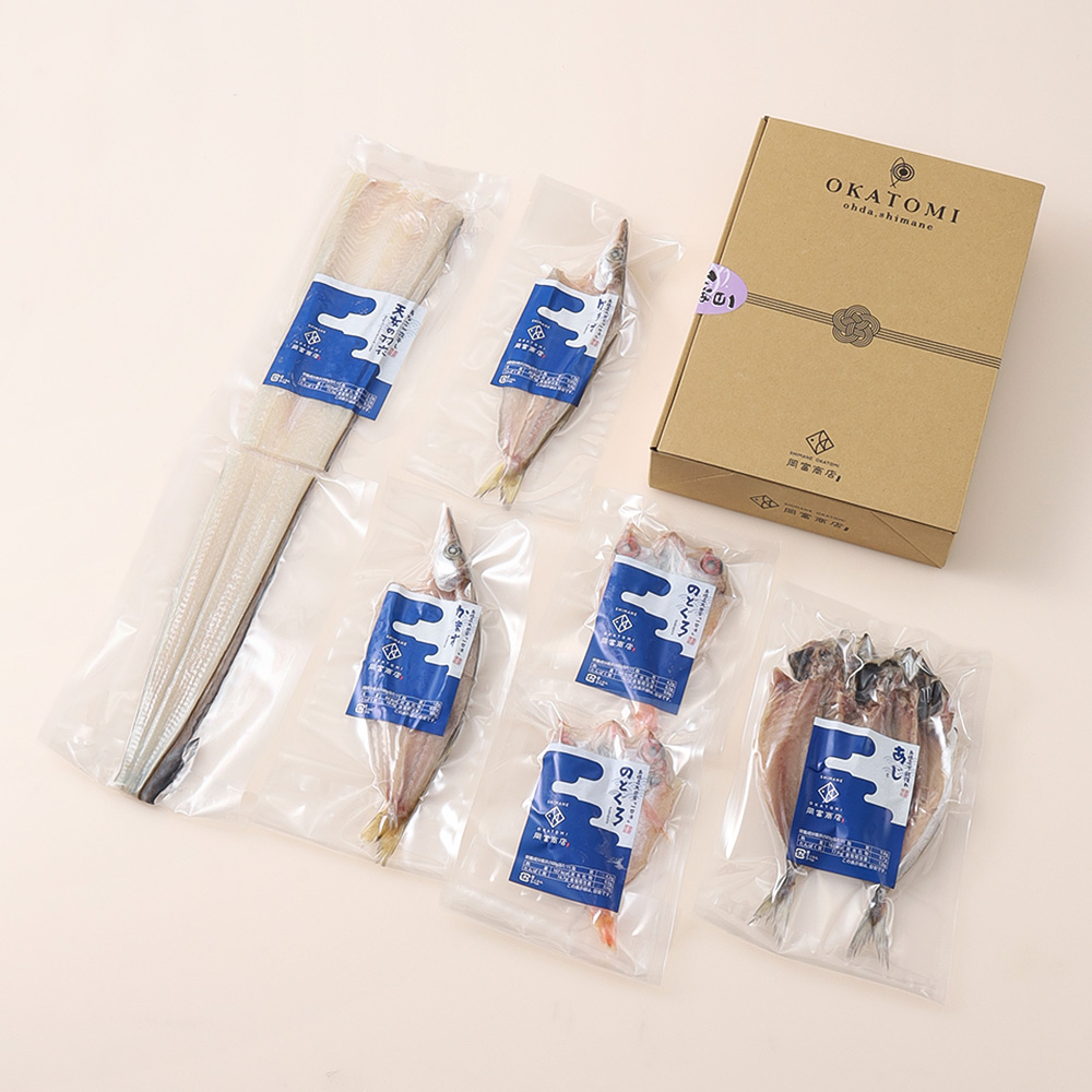 島根県沖「一日漁」で漁獲された魚を買付から製造まで自社一貫体制で行うことで、原料の状態によって漬け込みや乾燥時間を調整する干物作りにこだわっています。天日塩のみを使用した保存料・着色料不使用の商品です。肉厚でプリプリの食感の身はもちろん、パリッと焼いた皮の旨味が濃い品々です。母の日掛け紙とカードをお付けしてお届けいたします。