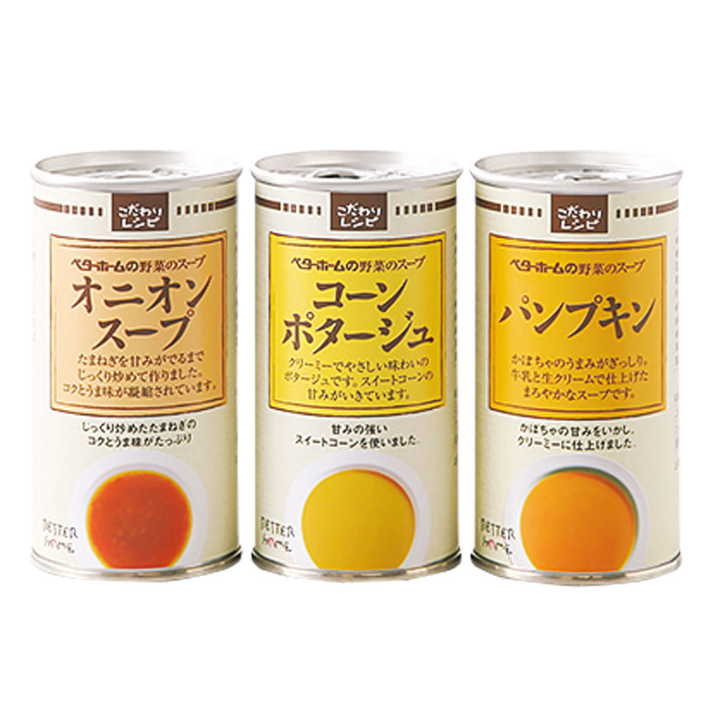 オニオン・コーン・パンプキン各190g×3缶、3種計9缶