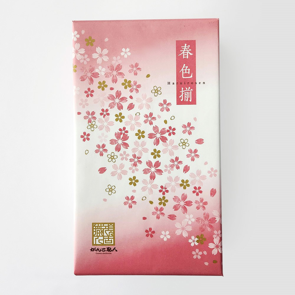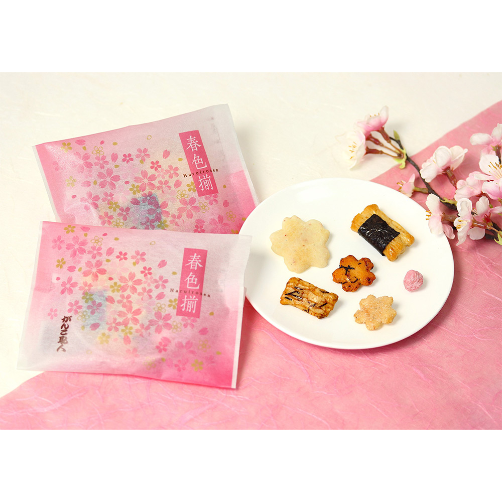 桜咲く日本の情緒豊かな風景を、6種類のあられ・お煎餅で表現しました