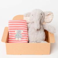 ゾウのぬいぐるみとスタイのギフトセット。BOX入りなのでプレゼント用としてもおすすめです。