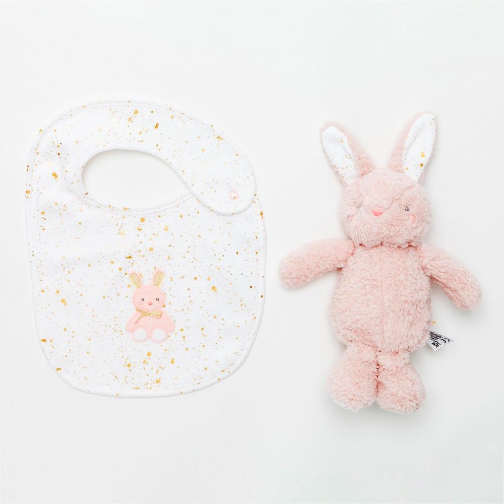 バニーのぬいぐるみとスタイのギフトセット。BOX入りなのでプレゼント用としてもおすすめです。