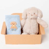 子犬のぬいぐるみとスタイのギフトセット。BOX入りなのでプレゼント用としてもおすすめです。
