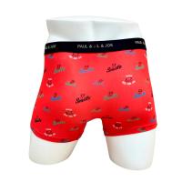ブランドロゴとブランドアイコンを組み合わせたポップな総柄ボクサーパンツ。スタイルのフロントは丸みのある立体的なパターンで圧迫感を軽減。素材はなめらかで柔らかい風合いが特徴の綿レーヨンベア天竺素材を採用。ウエストゴムは肌触りの良い裏パイル仕様。