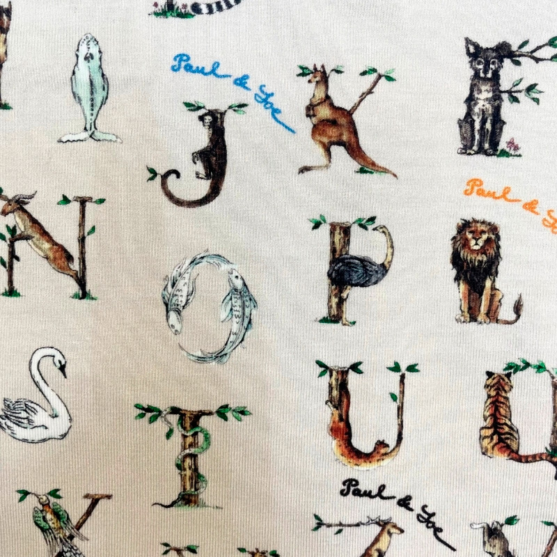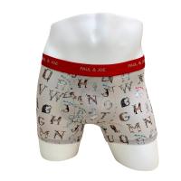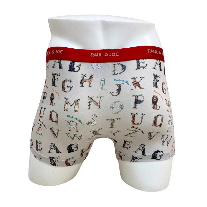 アルファベットと動物を組み合わせたシーズナブルデザインの前開きボクサーパンツ。スタイルのフロントは丸みのある立体的なパターンで圧迫感を軽減。素材はなめらかで柔らかい風合いが特徴の綿レーヨンベア天竺素材を採用。ウエストゴムは肌触りの良い裏パイル仕様。
